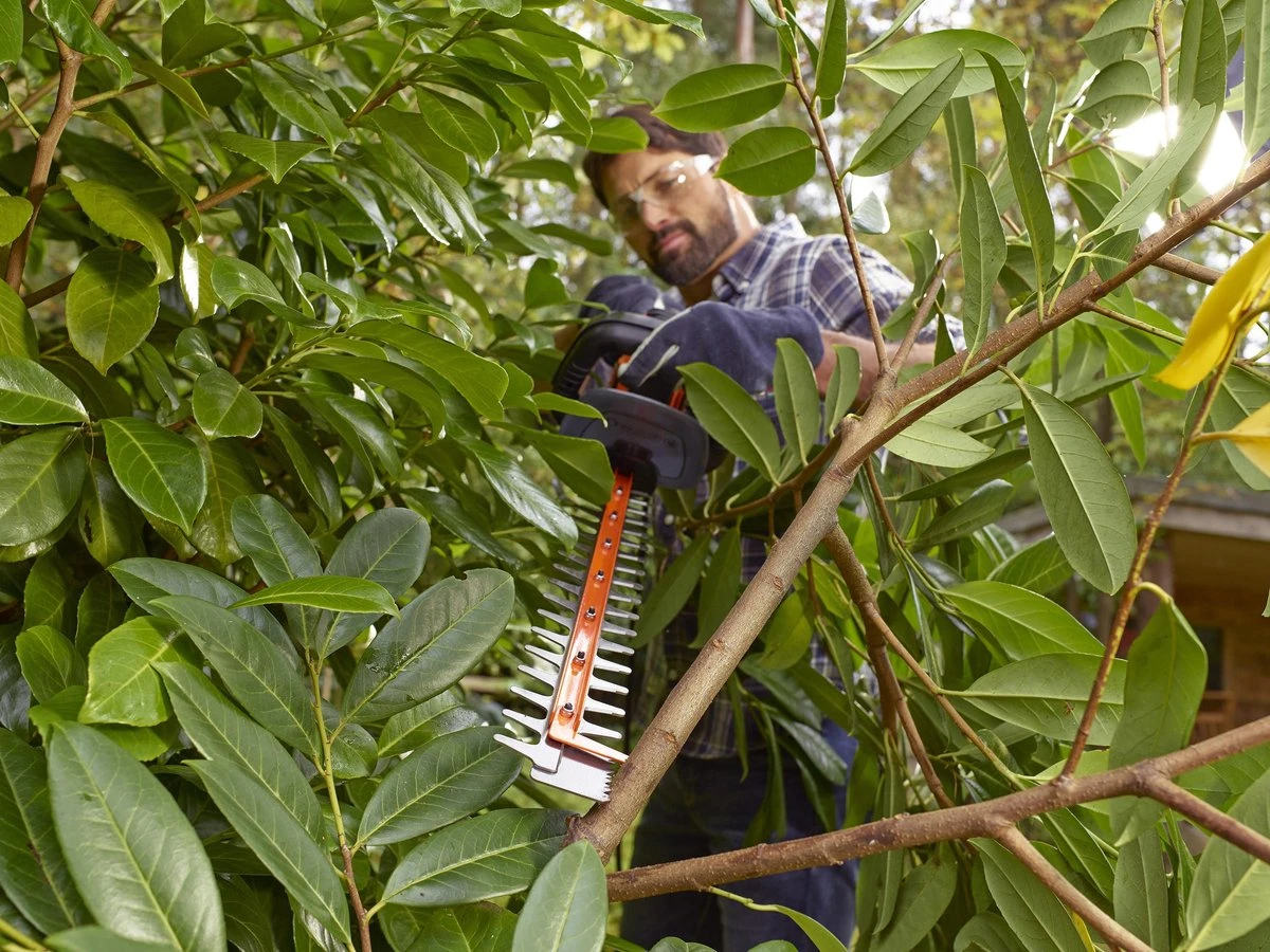 Draag altijd een veiligheidsbril en bij voorkeur handschoenen als je de heggenschaar gebruikt, zo voorkom je eventuele verwondingen.