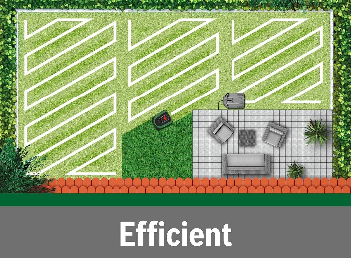 - Indego XS 300 met LogiCut brengt het gazon in kaart en maait in efficiënte parallelle banen, zodat uw gazon sneller weer vrij is.