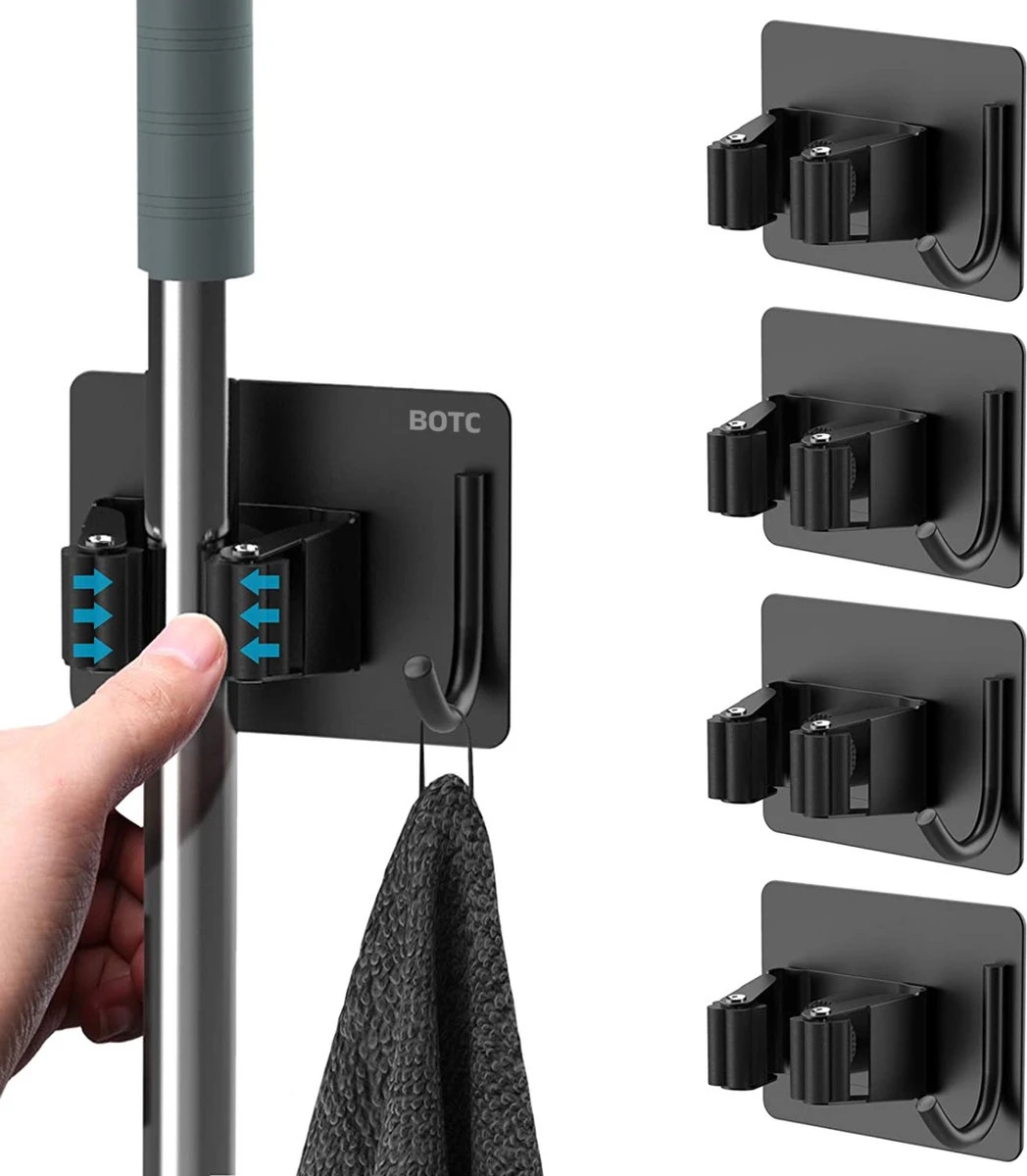 Toepassing – Verschillende toepassingen van Mop Rack muurbevestiging, niet alleen voor het ophangen van Mop en bezem, maar ook voor het ophangen van verschillende soorten kleine voorwerpen, zoals reparatiegereedschap, paraplu’s, keuken benodigdheden, toiletborstels, enz.