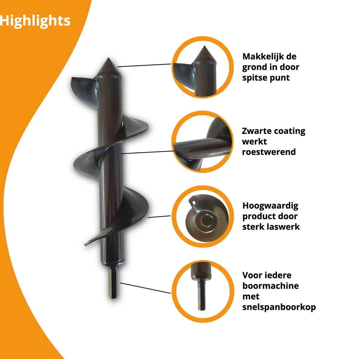 Boor gaten voor een parasol, palen, of het planten van diverse (bloem)bollen en gewassen: met deze boor is het zo gebeurd. Bespaar tijd en bestel direct! Niet geschikt voor SDS boorkop.