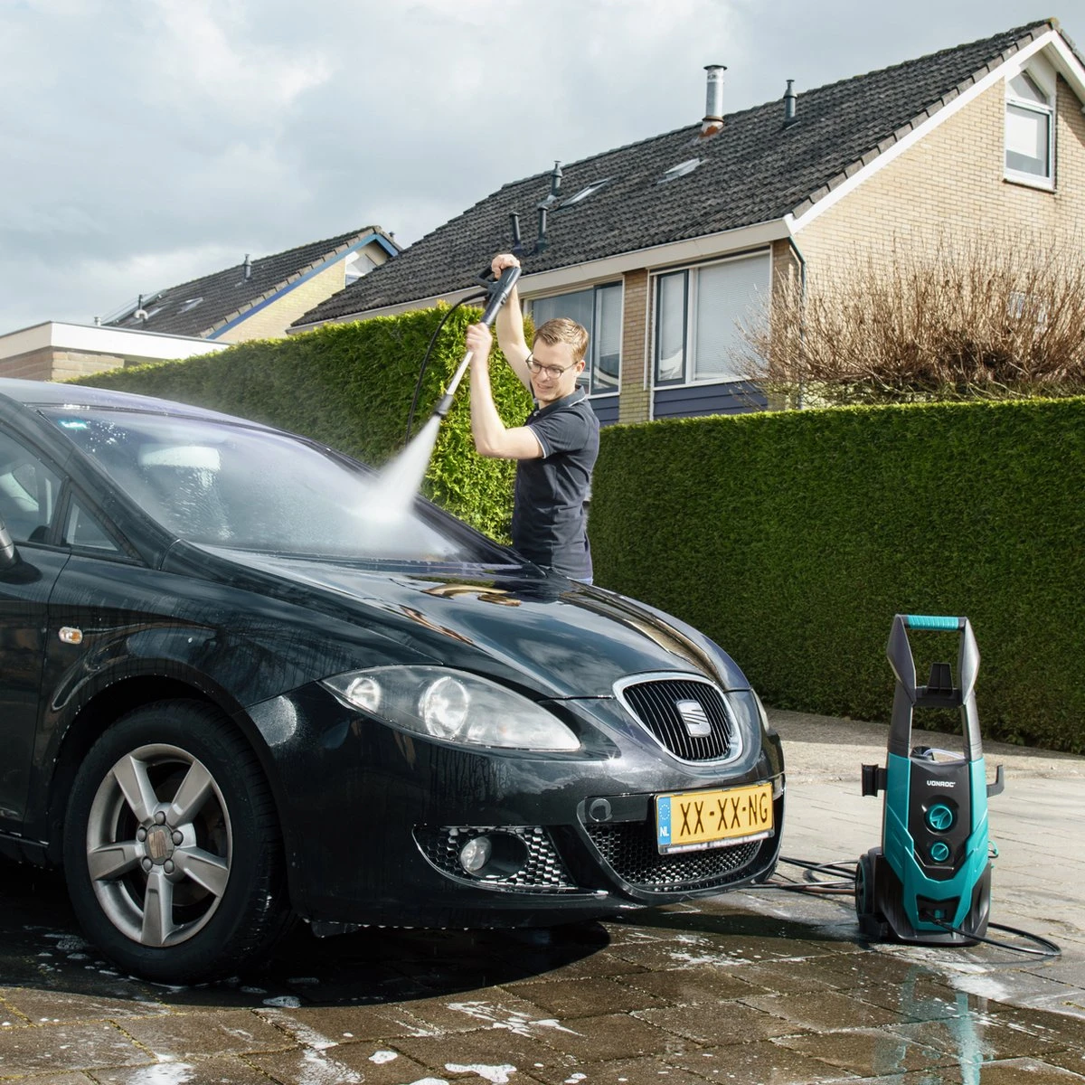 - Krachtige hogedrukreiniger van 2200W die 450 liter per uur aan water levert met een druk 170 bar.